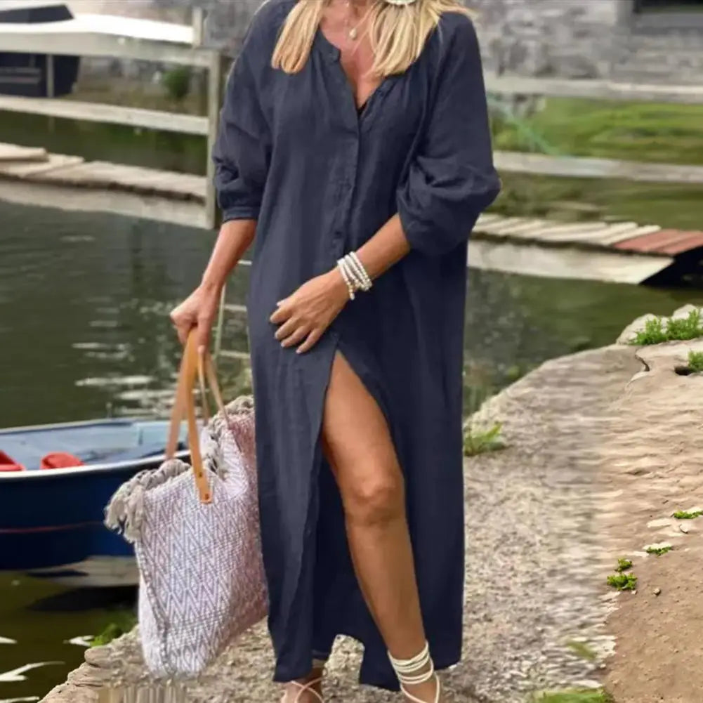 This oversized dress embraces effortless sophistication with a loose fit, perfect for any occasion. Featuring a button-down design and flowing silhouette, it’s made for easy, comfortable wear. Whether you're enjoying a casual day out or elevating your everyday look, this dress combines style and comfort.